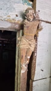 Maria Eva nunca tuvo hijos, pero crió a varios niños abandonados. “Las prostitutas se iban del pueblo, les dejaban a sus hijos y nunca regresaban por ellos. Se ha dedicado gran parte de su vida a recoger a gente desamparada”, comenta una amiga suya. La fachada de su casa está cubierta por una espesa vegetación: plantas ornamentales, curativas y espirituales. “Aquí vivo prácticamente sola, porque los dos muchachos que adopté no pasan en casa. Uno pasa bebiendo ron y el otro trabajando” comenta acariciándose las piernas para que no se le entumezcan los huesos. En el marco de la puerta principal, que da acceso a la sala, tiene un cristo mutilado de yeso que funciona, según ella, como amuleto contra la furia de la naturaleza. Mantiene sentada en la terraza con un bastón en una mano y un pedazo de cartón en la otra para espantar los mosquitos. Observa desde ahí los movimientos del mundo y responde a los saludos de rostros que no alcanza a reconocer.