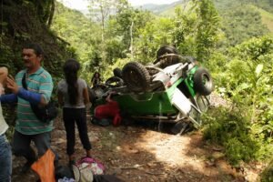 Otra vez sí se golpeó fuerte las costillas. No se rompieron, pero se corrieron. “No están en su sitio”, fue lo que le dijo la boticaria de un caserío de mineros en el cañón del río Porce. El chivero, que era una vieja Toyota cargada de bultos en el techo, se quedó sin frenos y terminó dando una vuelta de campana. Quedó patas arriba. No fue como en las películas, pensaba el fotógrafo. Nadie llega a ayudar, cada uno, cada una, sale por su cuenta. Cuando logró salir, con vidrios en el pelo y aún aturdido, el fotógrafo buscó su morral, sacó su cámara y tomó una foto. Más tarde contaban esa historia y reían. Esperando algún rescate en el caserío de mineros cerca, le decían a todo el que llegaba a ver qué había pasado: ¿y saben qué fue lo primero que hizo el fotógrafo apenas pudo salir todo raspado y con sangre en la cabeza? Y reían.
