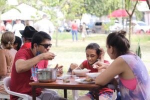 Concluyó el espacio de tertulias y cada uno se concentró en sacar de su mochila o de una bolsa de plástico el recipiente en madera o metálico para tomar su parte del recién preparado sancocho. En sillas o sobre la hierba empezaron a saborear el exquisito plato al que surtieron con carne de gallina criolla, bagre y costilla de res para el placer de los tertulianos como recompensa a su aporte a la tradición ancestral.