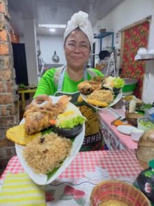 Es invitada de honor en eventos de cocina internacional por su profundo conocimiento en la preparación de la cocina ancestral ribereña. Ella insiste en el uso de los fogones ecológicos.